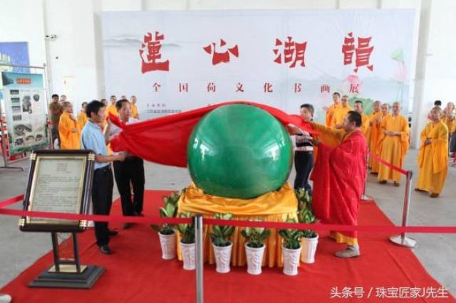 ↑↑↑ 2017/8/1,直径1.3米,重达2.58吨的特大夜明珠在江苏金湖大佛寺展出