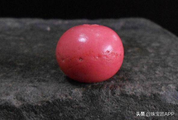 区分:“吉尔森珊瑚”没有天然红珊瑚特有的生长纹理构造;且颜色均匀分布,放大观察只可见细微粒状结构。
