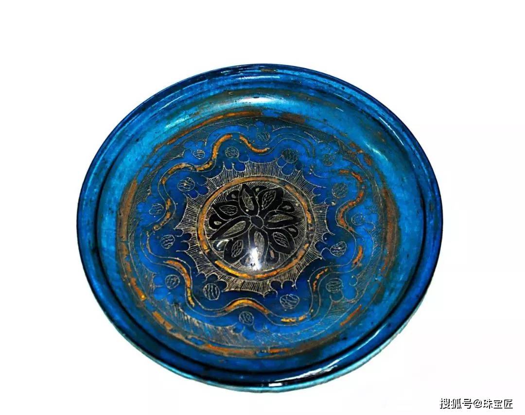 八瓣团花描金蓝琉璃盘·唐 1987年出土于法门寺地宫