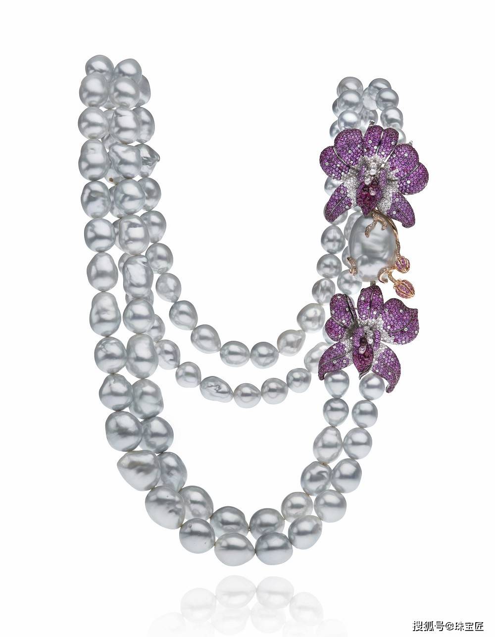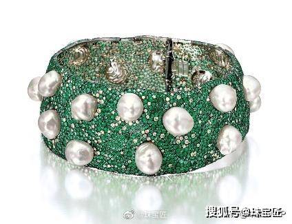 养殖珍珠配袓母绿及钻石项圈,Carolina Herrera为Mikimoto设计