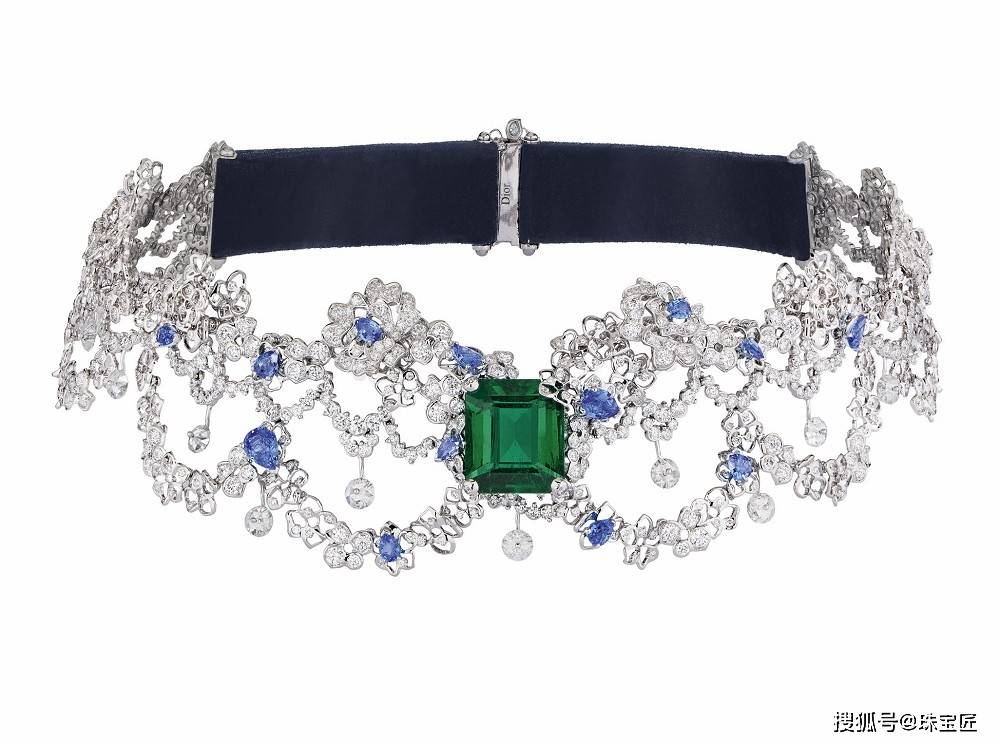 Dentelle Velours 祖母绿白金项链,by Dior