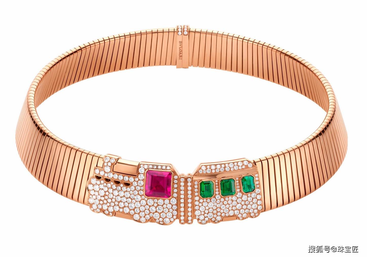 抛开项圈的质量大小与体积尺寸,这种开口项圈设计的形式,在一些大牌高定珠宝的项圈珠宝作品中我们依然可以见到。