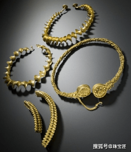 公元前300-100 年的苏格兰金项链:Iron Age gold torcs| 图源:微博“仰问千年事”