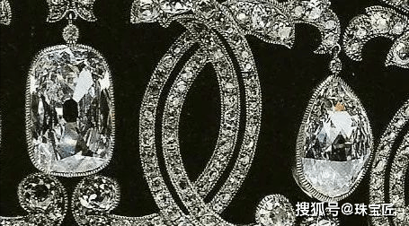 这顶冠冕是以金银为基座,由钻石镶嵌而成,冠冕的正中间镶嵌了一颗来自戈尔康达的方形钻石,两侧点缀梨形钻石,钻石镶嵌而成的钻石环,环环相扣,别具一格的镂空设计,浪漫而别有风韵。
