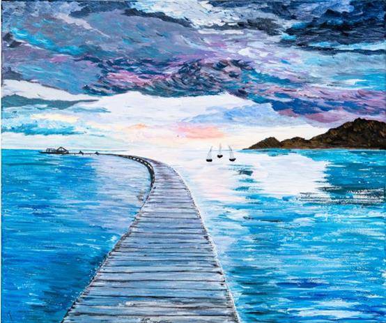 艺术家所呈现的美丽触动观赏者。夕阳,大海,忙碌了一天之后回来的渔夫们……