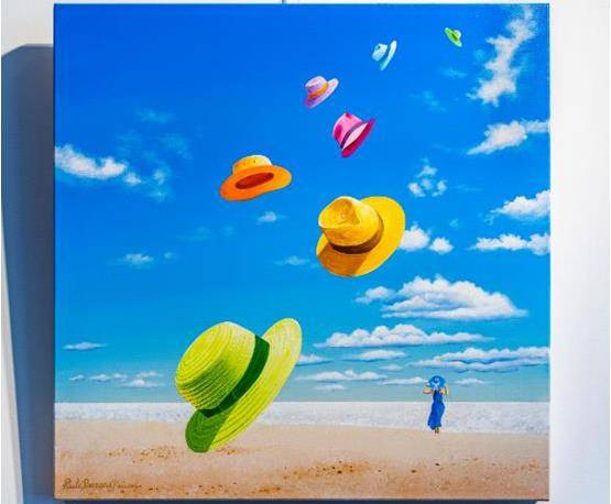 这幅画中最明显的元素是从远处飞向我们的帽子。这些飞行帽意味着我们的自由思想。可以说是真正的“休闲之钥”。