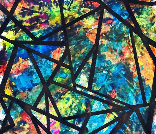 《被分割的真实》,似乎是“叠加”的杂乱无章——色彩和黑线“类几何”架构。