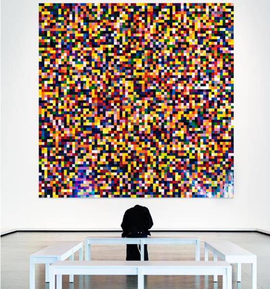 这幅作品叫做“4,900色”,占据了整个墙壁,白色休憩台安装在作品前面,以便参观者可以坐下来,花时间欣赏这幅抽象的画。