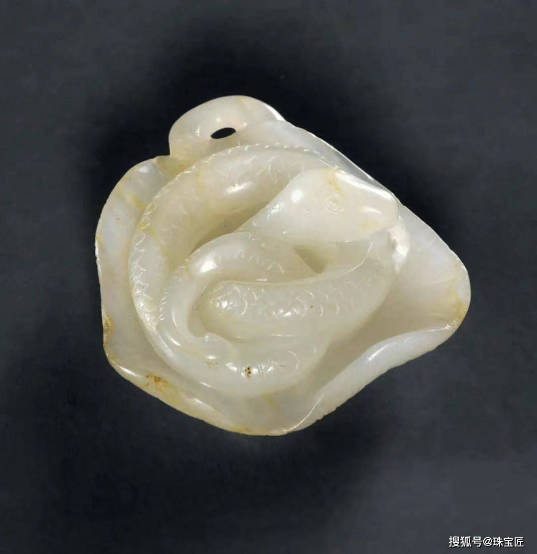 明·白玉荷叶盘蛇坠 | 图源:北京鸿盛祥国际拍卖