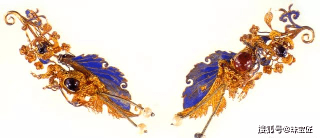 镶宝石点翠艾叶蟾蜍金簪 北京故宫博物院藏