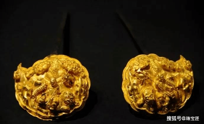 比如下面这件现藏于江阴博物馆的明代艾虎五毒金头银簪,用整块金片锤揲出仙人、老虎、三足蟾蜍、蜈蚣、蝎子等图案,并以山石、青松为背景,骑虎之人一手执锄,一手提花篮,且锄头恰好压在蝎子身上。
