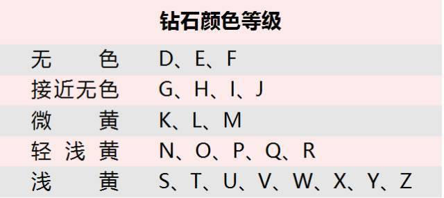 钻石颜色分级是把钻石按偏黄的程度分为不同的等级。以D级最高,Z最低。Z以下的一般当做工业用钻,也就是金刚石。