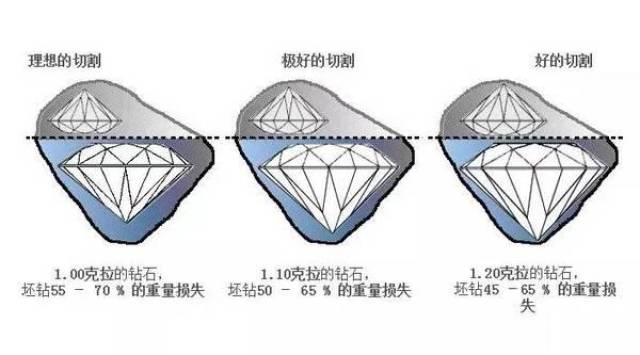 不过由于市场需求量太大,很多原石即使切割成圆钻会损耗更大,也会选择圆形切割。