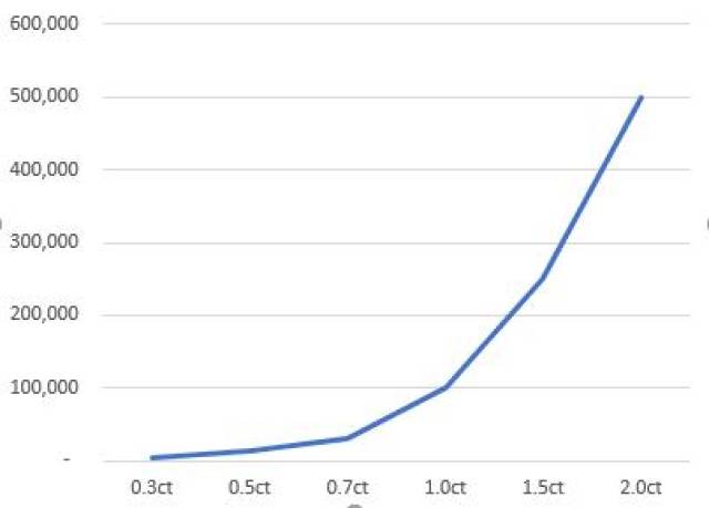 大家都知道,钻石越大,价格越高,但钻石的价格和重量不是等比例增加的,而是......嗖的一下......呈几何级数增长。