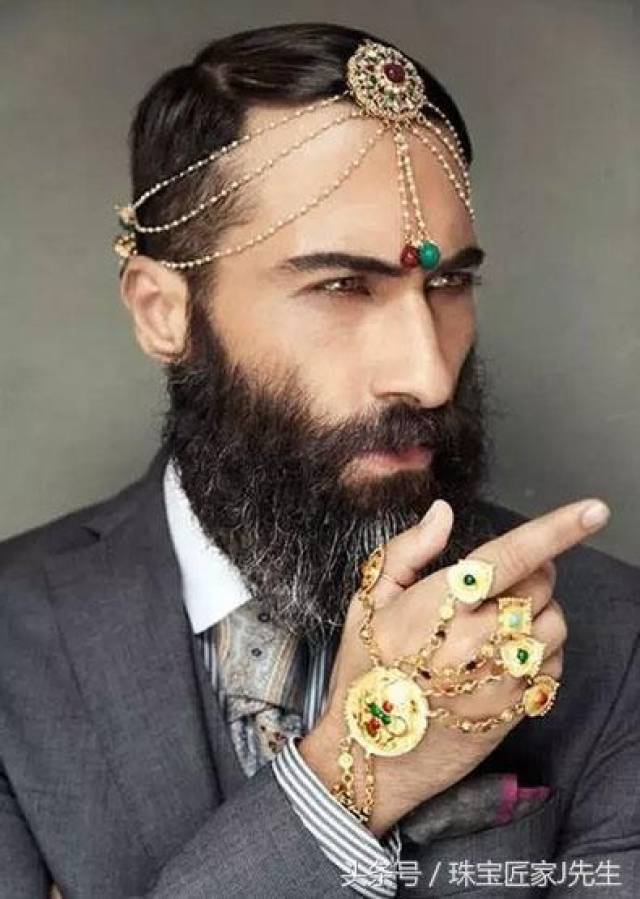 相比较于中国男人含蓄、内敛,对于印度男人来说,珠宝就像皮鞋、领带一样日常。