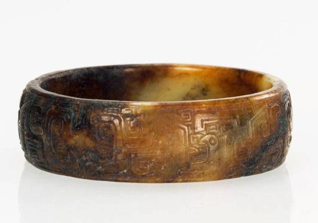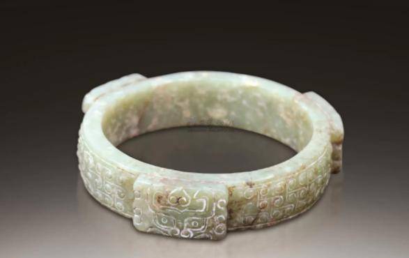 到了商周时期,手镯的样式虽与新石器时期没有明显的差异,形制上厚重宽大,以扁圆形为主。但材质上开始发生变化,以玉石为主,出现了金属为材质的手镯。