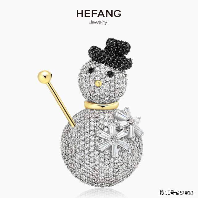 除了浪漫和表达态度外,HEFANG jewelry的雪花系列也有许多俏皮的设计,比如下面这枚可爱的雪人胸针。