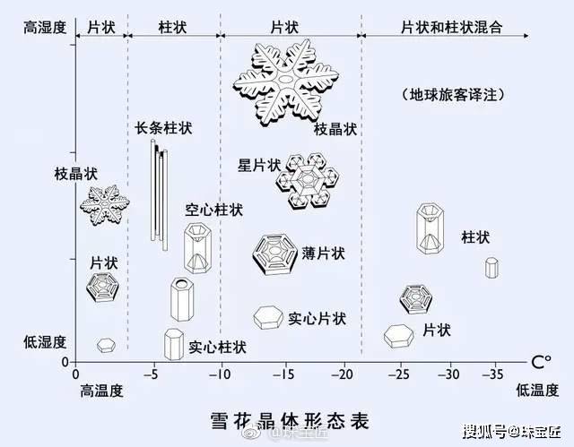 雪花的样子并不是一成不变的,在不同温度和湿度的环境下雪花的结晶状态也有不同。