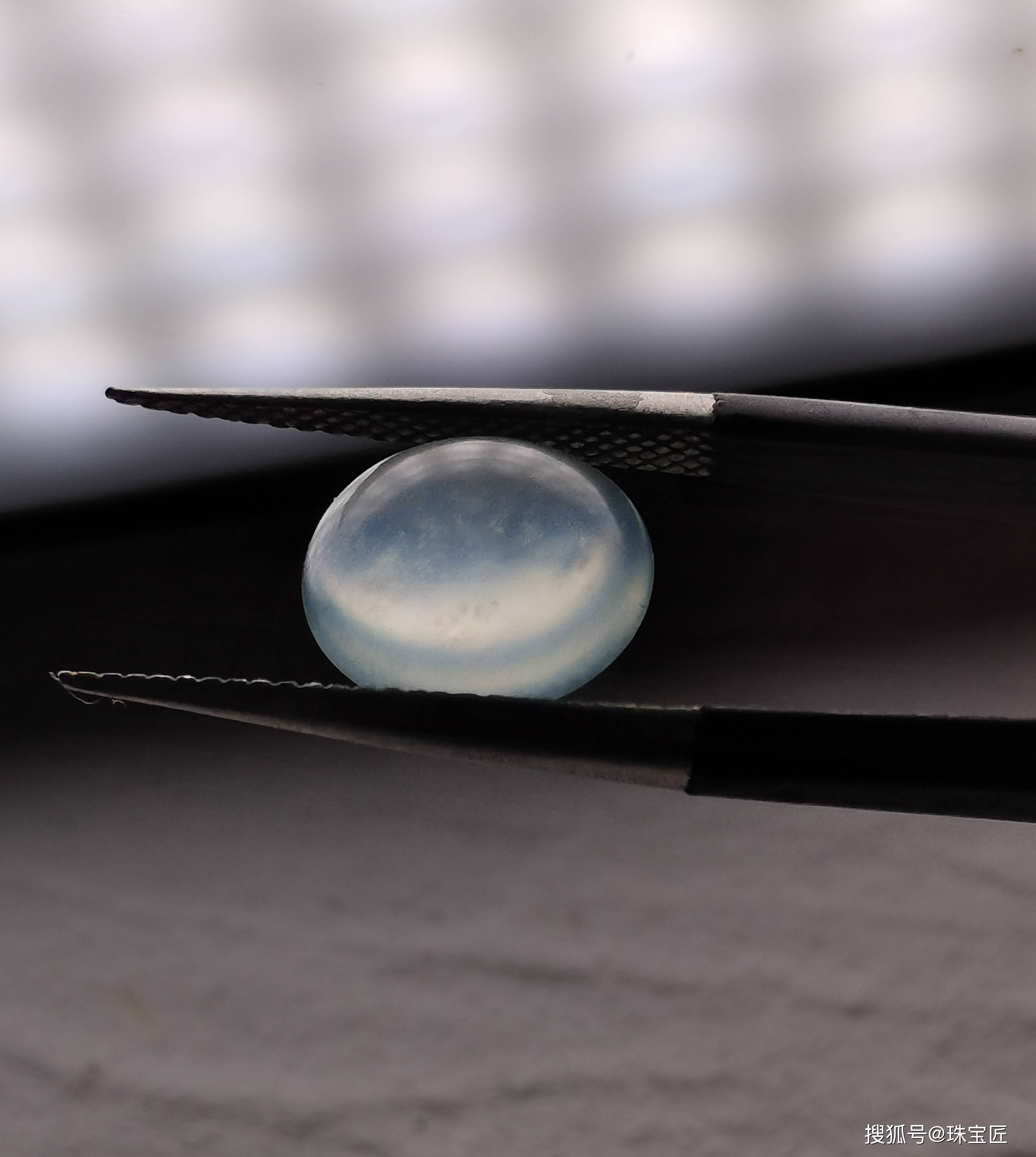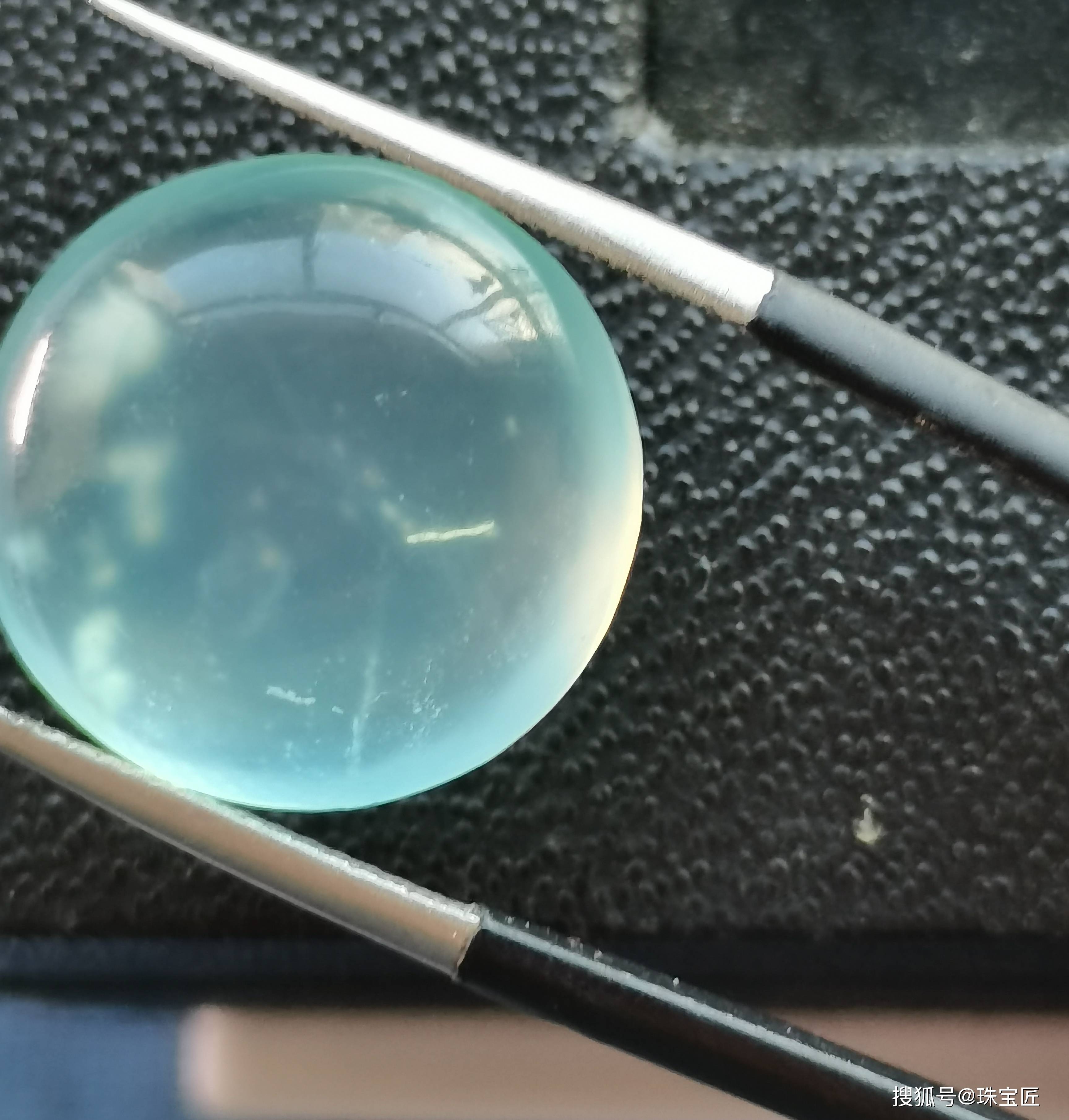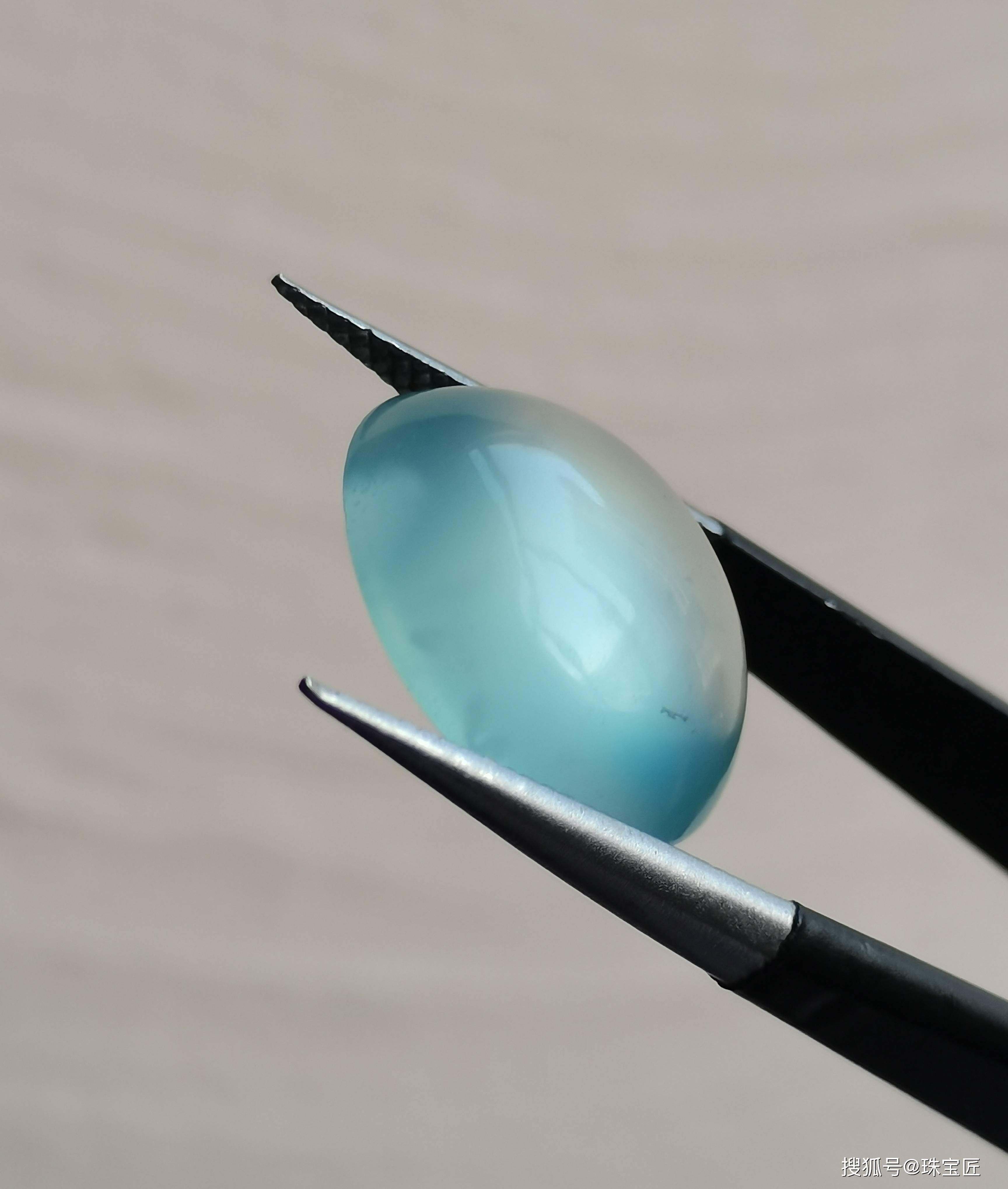 小体积的“天青冻”蛋面,单从观感上很难区与翡翠分,这时候就需要实验室送检。