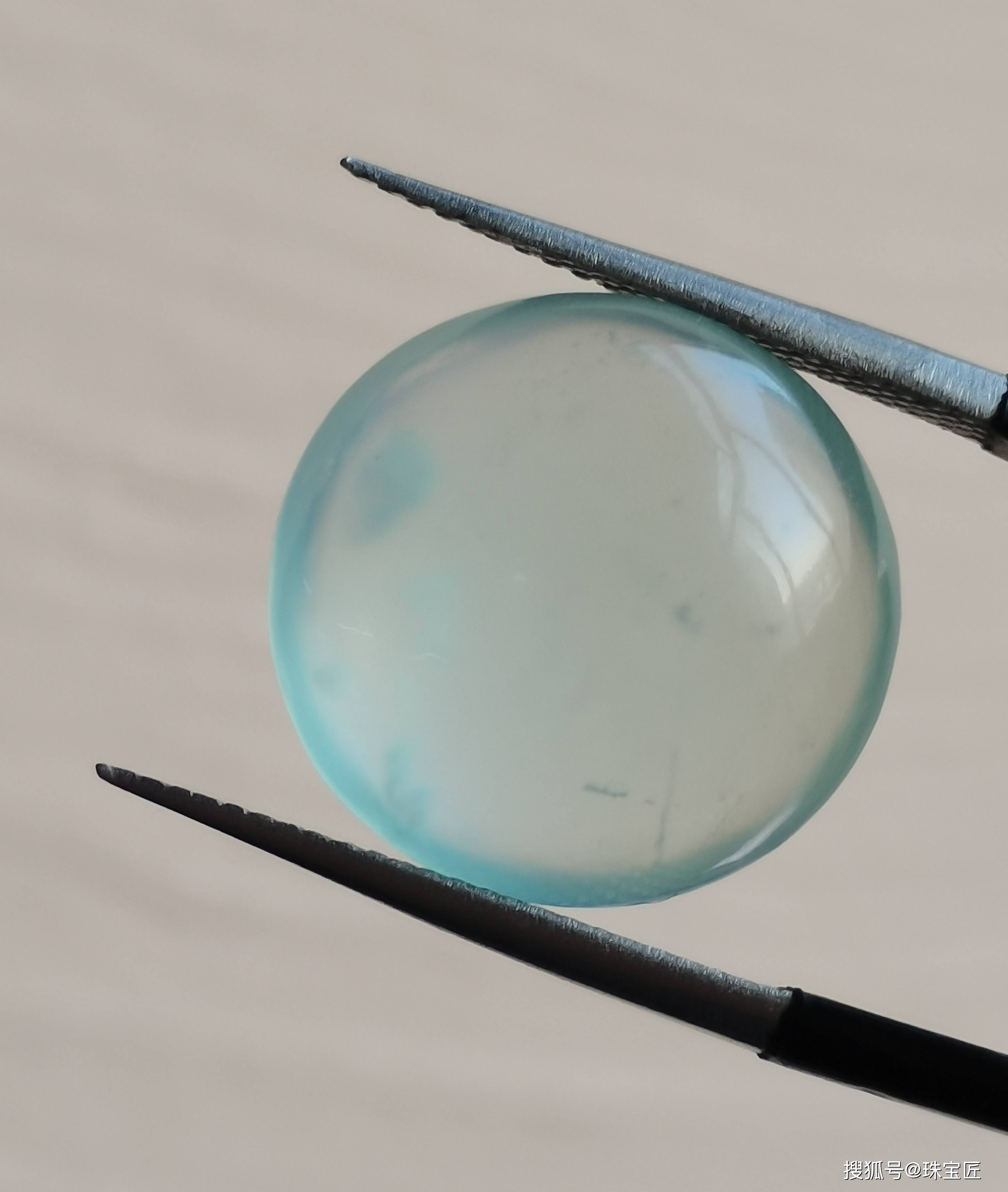 当天青冻被打磨成体积很小的蛋面时,真的很难区分天青冻与翡翠。
