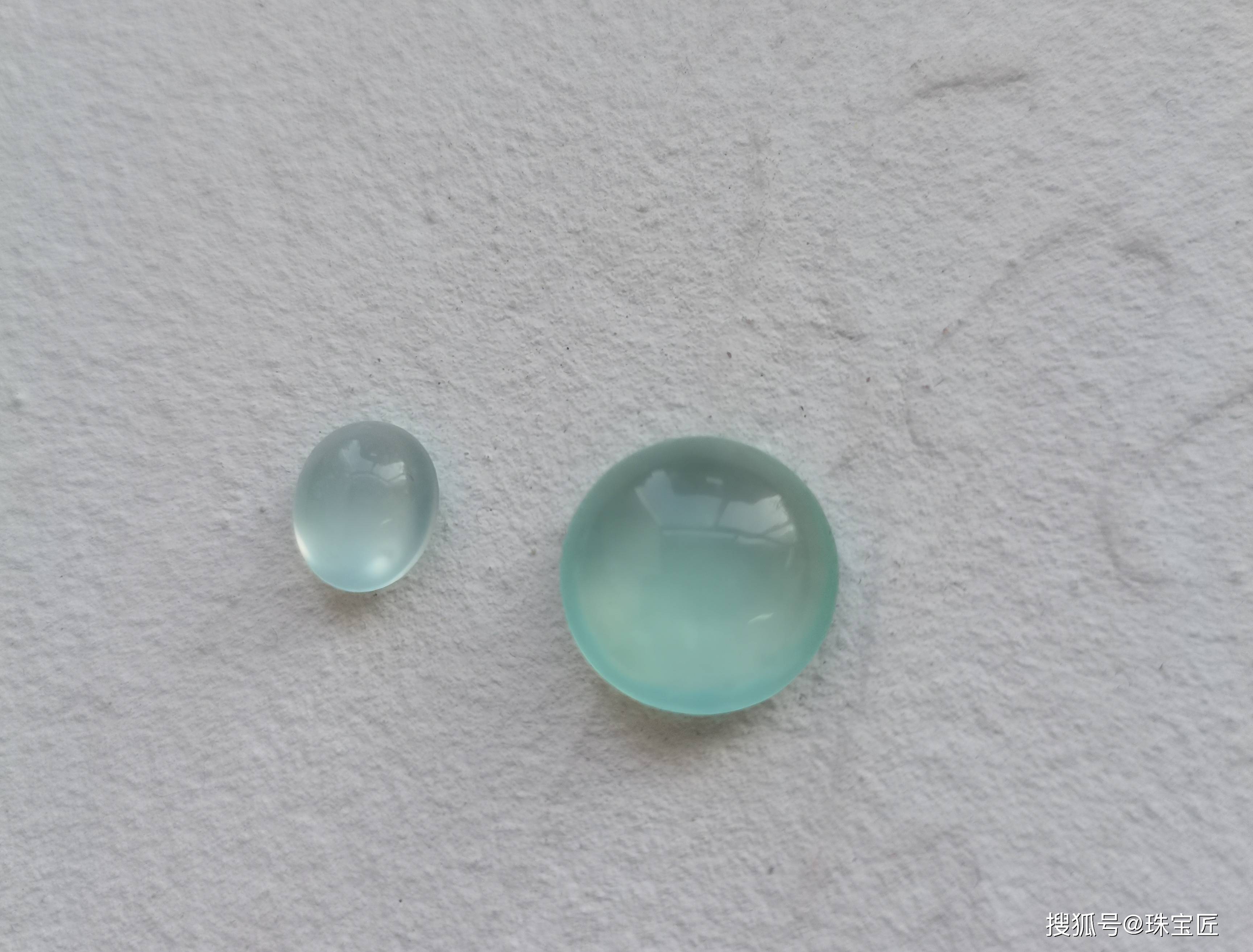 上翡翠,下“天青冻”蛋面,图源珠宝匠实拍