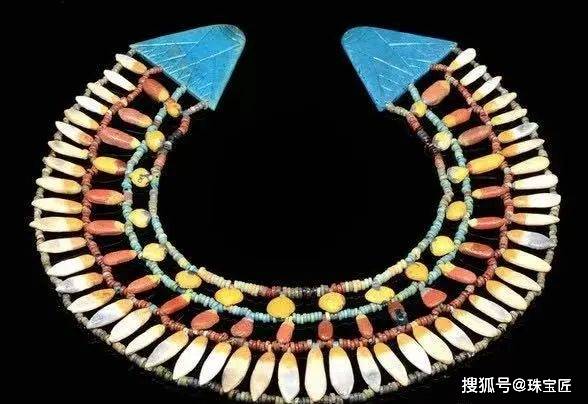它,夸张、繁复,从颈部蔓延到肩膀处,几乎覆盖了整个胸部,视觉冲击力极强,是古埃及最具有代表性的首饰之一。