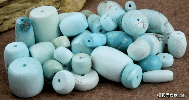 泡松是一种低档绿松石,它通常为发白的月白色、浅蓝色;其质地松散、颜色浅淡,表面光泽差,硬度低(莫氏硬度4)。
