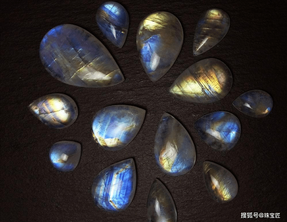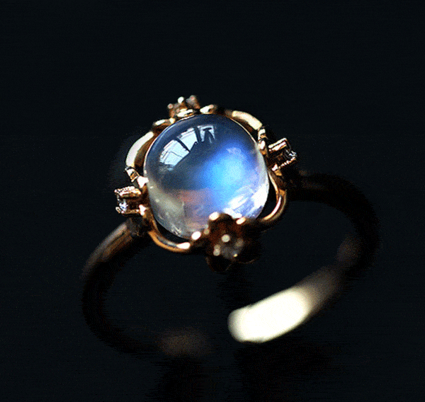 即随着月光石的转动,在某一角度可以见到白至蓝色的发光效应,就像蒙胧的月光。