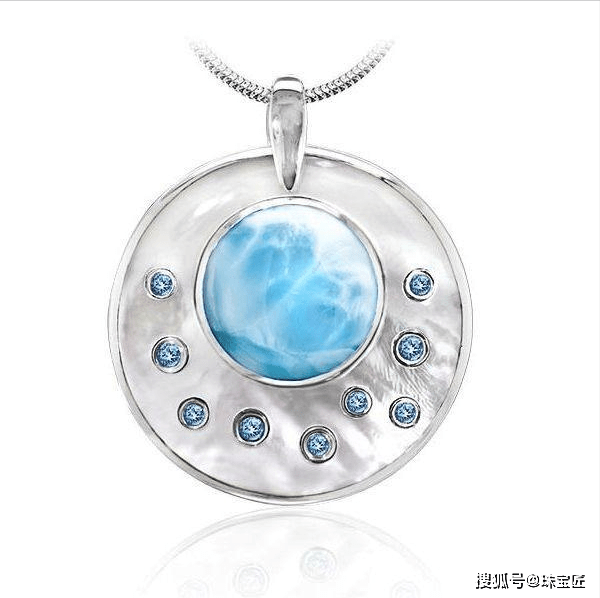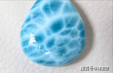 因表面纹理神似大海波浪而得名的海纹石,还有一个名字叫做拉利玛,学名叫含铜针钠钙石,产于多米尼加地区。
