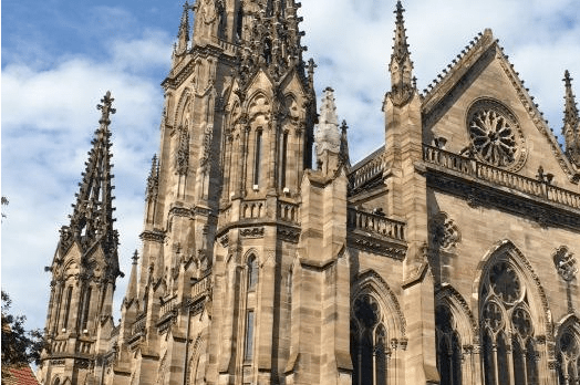 桑丽斯建於1153-1191年的哥特式教堂,是在旧有的一个罗马式教堂基础上改造的,公元三世纪的时候,已经有传福音的人在此建立了教堂,本来是献给圣热尔维和圣普罗泰(拉丁文Gervasius和Protasius)兄弟俩的。后来改为Notre-Dame圣母教堂,是最早拜圣母玛利亚的教堂之一。