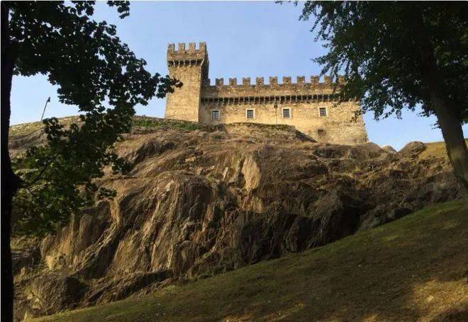 站在城外海拔462米的蒙特贝罗城堡(Castello di Motebello)要塞的古堡顶部向北眺望,坐落在城内那座石峰上的卡斯特尔格朗德(Castelgrande)城堡,俯瞰着整个提契诺山谷。暖暖的阳光照耀着古老辉煌的城堡,古朴神秘,清晰雄浑。古堡要塞历经千年,巍然矗立,雄风犹存,依然忠实地守护着山下这座宁静悠远的贝林佐纳(Bellinzona)小城。