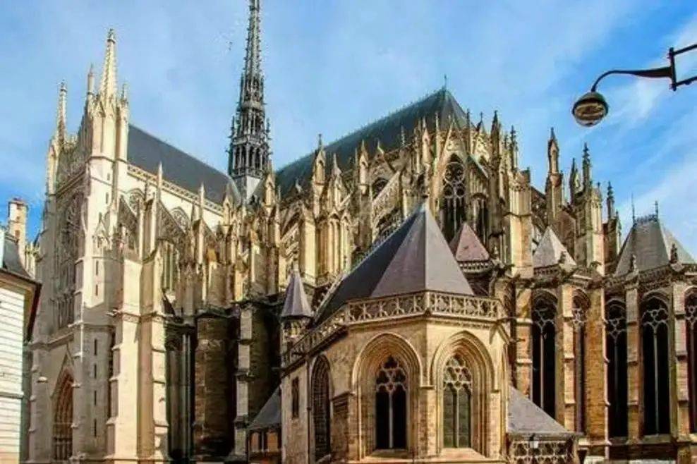 完美的亚眠大教堂,外观为尖形的哥特式建筑,墙壁几乎全被每扇12米高的彩色玻璃窗代替,几乎看不到墙面,堪称建筑史上的奇观。